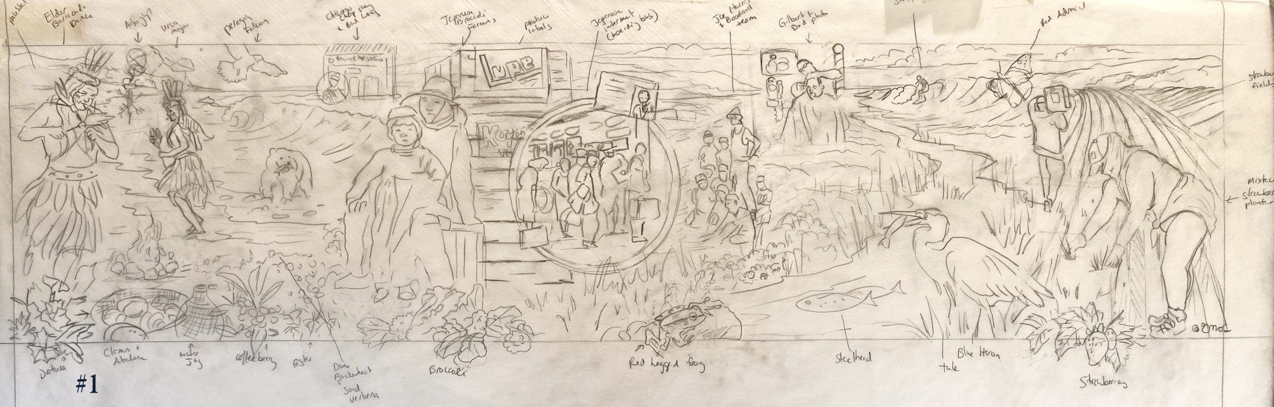 I was honored to be selected to paint the Coastal Stories Mural commissioned by the Dunes Center and Coastal Conservancy.  This public art amplifies the voices and history of under represented communities in Guadalupe, CA, including the Chumash, Mixtecs, Japanese, Filipino and African Americans.